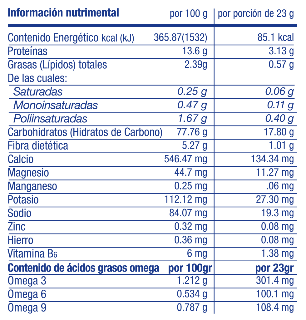 Por otro lado, la Linaza Micronizada aporta los ácidos grasos esenciales Omega 3, 6 y 9. Suministra una pequeña cantidad de Omega 6 y mucho más de Omega 3 lo cual inicia el desdoblamiento de los metabolitos ARA, DHA y EPA, fundamentales para la producción de neurotransmisores, procesos pro y desinflamatorios, así como la reestructuración de las rutas metabólicas de los neurotransmisores, además aporta el 30% de los antioxidantes del IDR. Gracias a su proceso patentado de producción, los aceites esenciales llegan intactos hasta dos años después de elaborarse, esto no ocurre con ninguna otra fuente de Omegas.