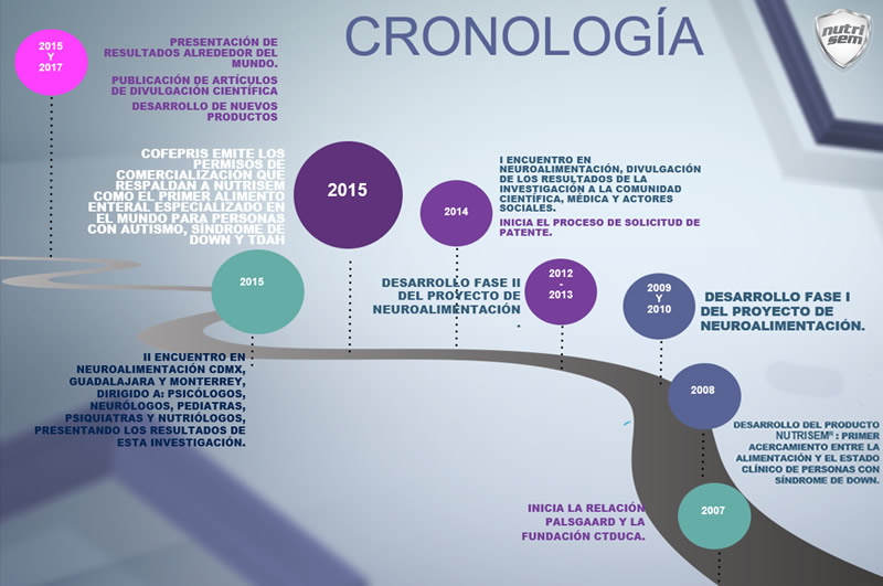 NutrisemR es el producto de la investigación sobre NeuroAlimentaciónR como Apoyo al Desempeño Fisiológico y en las Habilidades Cognitivas en Personas con Trisomía 21, Trastornos del Espectro Autista y Trastornos por Déficit de Atención con y sin Hiperactividad.
